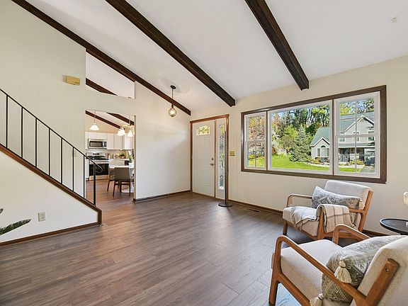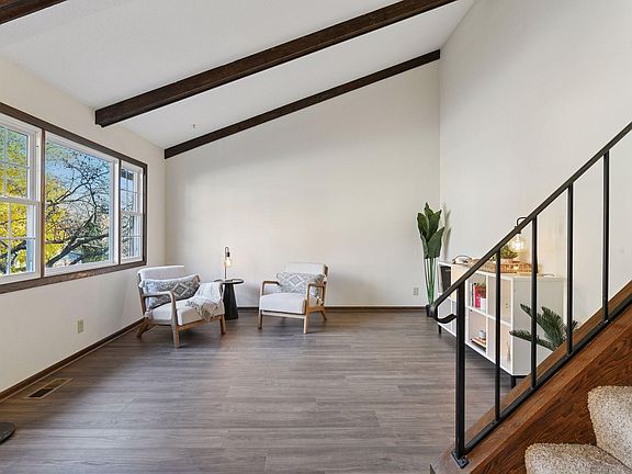Perched on a quiet and picturesque cul-de-sac in the heart of Eden Prairie, 12525 Porcupine Court is ready to welcome its lucky new owners! Come see how the cool mid-century vibes mix seamlessly with modern-day updates to make this home truly special. From the towering , beamed vaulted ceilings to the sparkling new kitchen featuring quartz countertops and stainless-steel appliances, to new flooring and carpet and freshly painted, every detail shines. Enjoy the convenience of three bedrooms on one level, a cozy walkout lower-level family room, and a flexible bonus space perfect for a home office, gym, or creative studio. The oversized two-car attached garage and spacious yard offer endless potential. All of this is just minutes from top-tier shopping, dining, and miles of scenic walking trails.