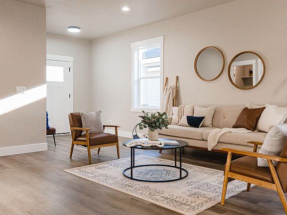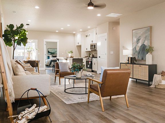Step into this brand-new construction home and experience its seamless flow from the open living room to the modern kitchen. Enjoy 1430 square feet of space featuring 9-foot-high ceilings and stylish luxury vinyl plank floors. The kitchen boasts ceiling-height cabinets with granite countertops, ample storage, and a sleek design. Relax in the tiled shower and step outside to unwind on the covered patio. Your insulated and painted garage is ready, and the fully landscaped and fenced yard completes your cozy retreat. Welcome to your new home!