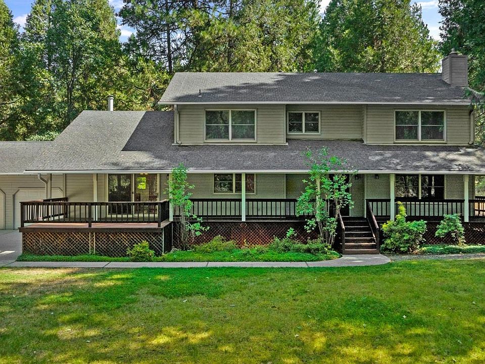 Down a private drive, tucked among majestic oaks, pines and redwoods, sits this beautiful home on a lush 2.5 acres. The home's highly sought after wrap around porch overlooks the large front lawn and private wooded area. Sit in your rocking chair sipping coffee in the crisp mountain air, listening to the birds chip or the relaxing sounds of the creek. Unwind after a long day by picking fruit off of the many established fruit trees that grow on the property. This home was thoughtfully designed by the original owners with family living in mind. A formal living room with fireplace is the perfect place to entertain, a large kitchen with island makes cooking a breeze and the family room with built in book shelves, and wood burning stove, located right off the kitchen will be the gathering place for all. A downstairs master with walk in closet and 4 large bedrooms upstairs with built in bookshelves and desks ensure everyone has their own space. Exceptional dual pane wood windows along with newer HVAC and water heater, make this home move in ready and waiting for a new family to put their personal touch on it. Minutes from Union Hill Elementary and Middle School and Downtown Grass Valley with its unique shops and restaurants. Easy access to Hwy 49.