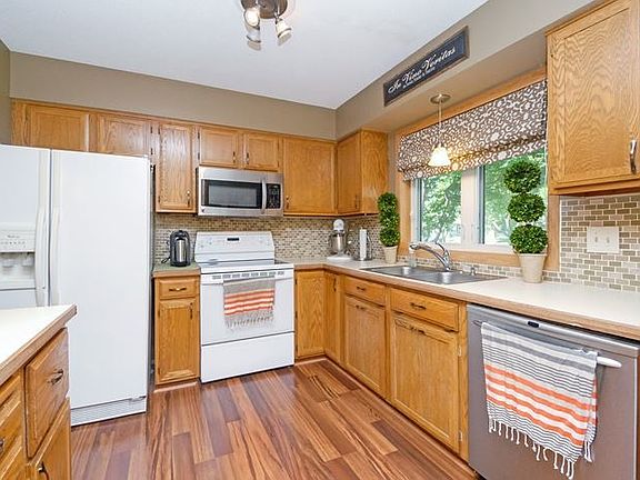 This meticulously maintained home is located in a highly desirable Eden Prairie location and features; 3 bedrooms, 2 baths, neutral dcor, upgraded lighting plus wood & tile flooring. The main floor features; foyer, kitchen and dining room. Exit from dining room to a freshly re-finished 20x14 deck and paver patio. Upper level features; two bedrooms and spacious living room. Upper level master suite includes a walk in closet and full master walk thru bathroom. The lower level includes an additional bedroom, tiled bathroom and the large family room boasting a wood burning fireplace. The exterior of this fine home is new from top to bottom and includes a new roof, new siding, new exterior trim, new gutters and windows. The lush, treed yard is surrounded by evergreens which provide year round privacy and beauty. This fine listing is within walking distance to the Homeward Hill Park and close to all of Eden Prairie's fine amenities.