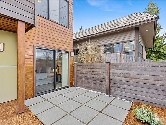 Spacious well-maintained townhouse worth seeing in quiet neighborhood! Entry opens to a lower-level bedroom suite with bath. The main floor is an open layout w/light-filled kitchen, dining area and living room w/vaulted ceilings. Enjoy features: 4-star Built Green Certified, bamboo hardwood, slab counters, designer tile bathrooms, custom cabinets, gas and electric fireplaces, and AC. Upper bedrooms have walk-in closets. Ethernet cables wired throughout. Sturdy deck railing and perimeter fencing is made of cumaru wood (iron wood). No HOA! Close to bus line, light rail station, shopping, restaurants and easy I-5 access.