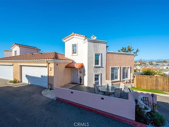 Welcome to this beautiful newly upgraded Coastal Oasis 3-bedroom, 3-bathroom home, designed with both luxury and entertainment in mind. Inside, you'll find an inviting open floor plan with cozy gas fireplace, Large dining area, highlighted by new luxury vinyl plank flooring throughout and carpeted stairs for added safety. The modern kitchen features a farmhouse sink, white cabinetry, stunning quartz countertops, wine refrigerator, built in desk and elegant wood shutters that complement the home’s sophisticated design. The spacious primary bedroom is a true retreat, complete with an ensuite bathroom featuring a brand-new European walk-in shower with multiple heads and jets, electric fireplace, dual sinks, a private water closet, and a walk-in closet. Access to rear yard where your private hot tub is steps away. Every detail has been carefully curated for comfort, style and relaxation. Step outside to explore the home's four distinct outdoor areas, perfect for every occasion. Enjoy sunsets, cozy fire and hillside views from the rooftop deck, complete with a peek of the ocean and a BBQ Island. The hot tub with pergola and artificial turf provides a tranquil oasis, while the large downstairs deck is ideal for dining and entertaining and evening fires. The front deck and fountain offers a charming space at entry level for social gatherings. This home offers low-maintenance outdoor spaces, ample storage, and a spacious 2-car garage with built in storage. Additionally, there are no HOA fees, and the property is self-governed by CC&Rs, giving you both freedom and peace of mind. The indoor laundry area adds extra convenience. And with the beach just about a mile away, you can enjoy coastal living at its best. This is a must-see treasure that blends modern updates with the best of outdoor living. All appliances, Hot Tub, BBQ Island, 2 Fire-pits with seating stay. Don’t miss out on this stunning move-in ready home! Furnishings negotiable! Live here permanently or celebrate life with a 2nd home on the beautiful California Central Coast minutes from the beach.