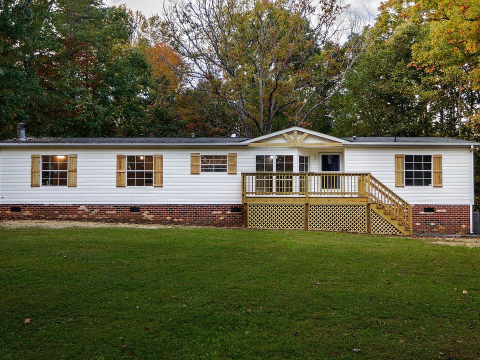 Welcome to this stunning, private oasis! Located on three acres, this three bedroom, two full bathroom home is newly renovated and move-in ready. This home offers new luxury vinyl plank throughout, fresh paint, new heating system, brick foundation, new plumbing and deck. Find peace in the beautiful pond behind the home, perfect for enjoying early mornings or evening sunsets.