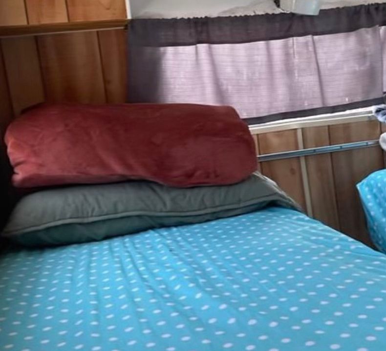 Acogedora casa rodante en un lugar tranquilo, con microondas, bano y un espacio comodo para vivir.