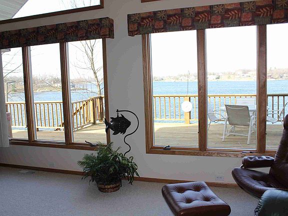 Single Family Home for sale by owner in Ellston, IA 50074. Beautiful lake front home on premier southern Iowa spring fed lake. Incredible views from almost every room in the house! Sun Valley Lake the best kept fishing secret in the midwest. Custom walkout ranch on main lake with expansive deck and hot tub. Great room with vaulted ceilings and gorgeous stone fireplace. Large Kitchen with granite counter tops. Over sized master suite with walk in closet, double vanities, tub, and shower. Walk-out family room with gas fireplace, surround sound , covered patio and hosta garden. Hard surface drive and roads, no gravel here!!!! 3 BR, 2 1/2 Bath, 2600 sq. ft. finished, 2 1/2 attached garage, 1st floor laundry