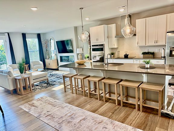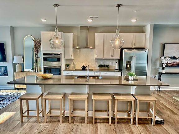 Upstairs, the primary suite includes a large walk-in closet and a spa-inspired ensuite bath with dual vanities and a glass shower. The flexible floor plan also includes two additional bedrooms and a versatile first-floor bedroom or office great for remote work or guests.
