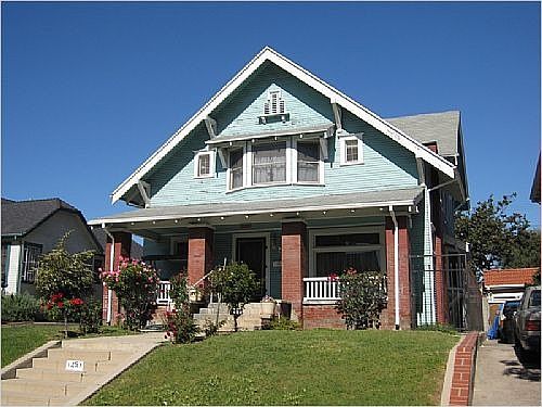 Grand Craftsman home located in prestigious Oxford Square. Old World craftsmanship and detailing throughout this turn of the century residence. Original wood features including built-in cabinets and bookshelves with beveled/leaded glass doors. Four bedrooms upstairs and den adjacent to spacious entry foyer, which provides open access to living and dining rooms, as well as stairway to second floor. Upstairs features large master bedroom with dual walk in closets, and bay style front windows overlooking front yard. Three additional bedrooms with doored closets and a large full bath complete the upstairs floor plan. The living room and dining room feature wood beams in the ceilings and built-in bookshelves/cabinetry incorporated into fireplace mantel as centerpiece of the room. Living room has large window facing front of home, and living room and foyer have leaded glass windows. Formal dining room has original built-ins for display of porcelain ware/silverware, with leaded glass doors, mirrored display, original dual fuel electric/gas sconce fixtures, and original bay style sitting area (with hidden storage) along the window. The kitchen is spacious and features original tile counters, and copious original built-in storage (other than faucets, kitchen has never been remodeled, and is faithful to original manufacture). Adjacent breakfast room and bonus room suitable for office/study, or additional bedroom. The yard is enormous with a 3-car detached garage, fruit trees, and recreation/rumpus room which could be used for almost any purpose including in-law quarters, billiards, home office or playroom for kids. Home also features a basement, front sitting porch and situated on a large 8,600 sf lot. Must see to appreciate! Neighborhood Description Classic post card Canary Island date palm lined craftsman neighborhood originally built in early 1900s. City tree service spread palm tree parasite during pruning in 1970s, causing many trees to succumb. No palms currently in parkway in front of home. Homes are elevated above street level.