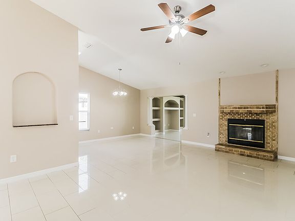 Please note, our homes are available on a first-come, first-serve basis and are not reserved until the lease is signed by all applicants and security deposits are collected. This home features Progress Smart Home - Progress Residential's smart home app, which allows you to control the home securely from any of your devices. Want to tour on your own? Click the "Self Tour" button on this home's RentProgress. Some images have been virtually staged to help showcase the potential of spaces in the home. The furnishings shown are for illustrative purposes only and are not included in the home. Attractive details throughout this three-bedroom, two-bathroom Wesley Chapel rental home make it a fantastic place to live. A charming brick fireplace in the living area acts as a gorgeous backdrop to a cozy seating area. Sleek tile flooring can be found throughout. Dramatic wall niches in the adjacent family room provide space for decor and your preferred entertainment devices. A sliding door opens to a large concrete patio area perfect for outdoor gatherings. You'll love cooking in the kitchen, featuring modern stainless steel appliances and chic cabinetry. The main bedroom is an oasis, complete with an en suite bathroom that has a tub/shower combo, dual vanity sinks, and a walk-in closet for more storage.