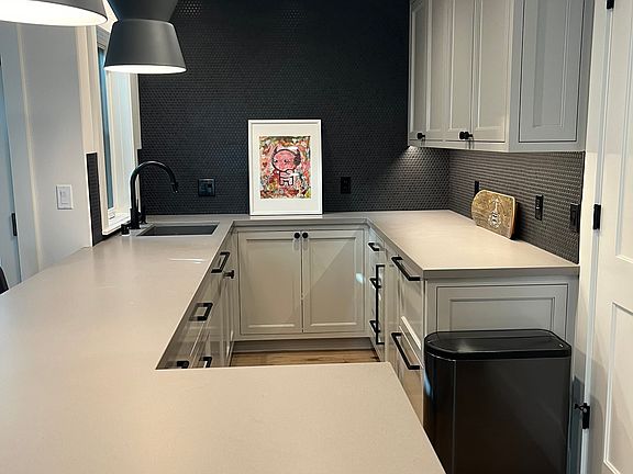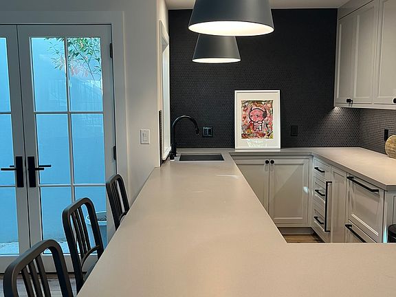 The bar/kitchen is all beautifully updated and significant for the space. Beautiful, modern bar stools allow people to eat at the counters. There are two modern pullout drawer refrigerators and a fully updated chilled wine cabinet.