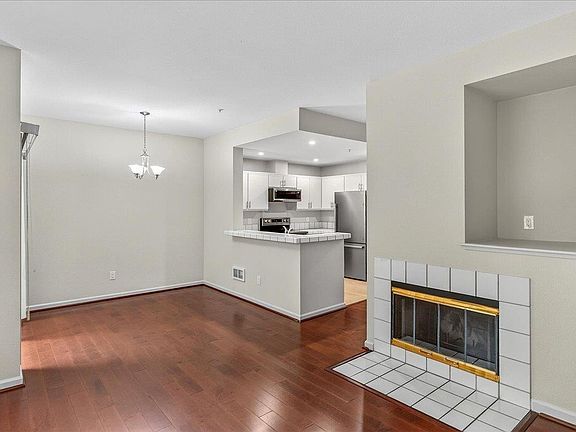 Your own Garage! And 1 extra Assigned parking spot. Your own full size Laundry Room! Fireplace! HOA $494. Extra Parking. 2 Pets allowed. Rentable (more than 30 days)! Kitty Corner to a park with playgrounds and tennis courts. End unit, upstairs. Tree top window views. New stainless steel appliances. New faucets, New bathroom vanity, toilet, glass shower. Flooring in kitchen, laundry room, bathroom and bedrooms, all new! New paint! Totally move-in ready. Click Virtual Tour for more pictures. Great location. Great rental potential, commute by train to SF.