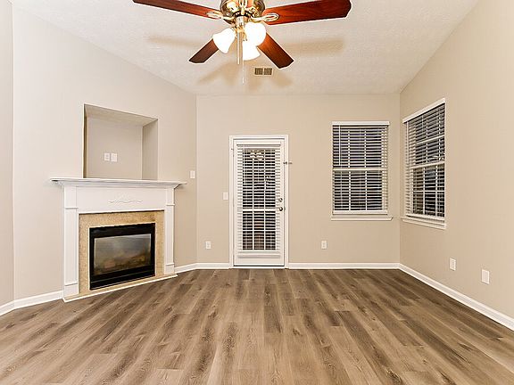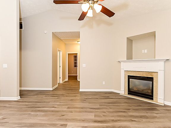 You'll love coming home to this Mcdonough, GA rental home's charming exterior and attached two-car garage. Featuring three bedrooms and two bathrooms within 1,556 square feet of space, this single-story smart home has a gorgeous tile fireplace with a media cut-out offering space for your electronics or keepsakes in the living room. A glass door leading outside provides extra natural light, while a ceiling fan helps with temperature control. Enjoy cooking on top-quality stainless steel appliances in the modern kitchen, which also comes with quartz countertops and plenty of wooden cabinets. You'll love how spacious the primary suite is. Along with a walk-in closet and wood-look flooring, the main bedroom includes a luxurious private bathroom with a bathtub and shower. Book your personal tour today!