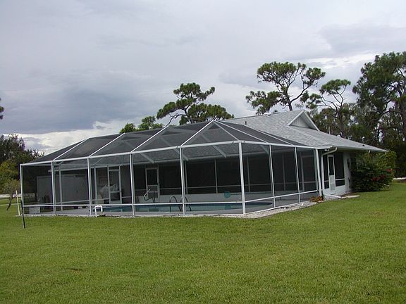 Looking for a pool home with privacy? All here for you. Nicely set back from road, well built home has 30'x10' Lanai leading to screened pool. Outside Shower! Plenty of seating for outside entertaining. Open living area, tile flooring and popular split bedroom plan, 2 full baths. Flower gardens, mature trees, 2 car garage PLUS workshop AND storage shed.