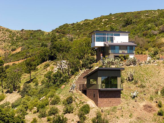 LedgeWater awaits as a stunning architectural masterpiece in West Malibu, representing the ultimate fusion of luxury, privacy, and natural beauty. This incomparable contemporary estate captures sweeping ocean and mountain panoramas through floor-to-ceiling glass walls, creating stunning vistas by day and incredible star-gazing by night. Designed by Patrick Killan and Howard Crabtree of 912 Architecture and developed by AIA award-winning Jeff Widmann, this architectural triumph showcases unparalleled craftsmanship completed in 2024. Nature and luxury converge with 75-foot limestone infinity pool, outdoor kitchen, state-of-the-art theater, and central glass elevator. Sustainable living features include 11.3-kilowatt solar system with dual battery backup, whole-house water filtration, and full home automation ensuring effortless modern living in this architectural sanctuary.