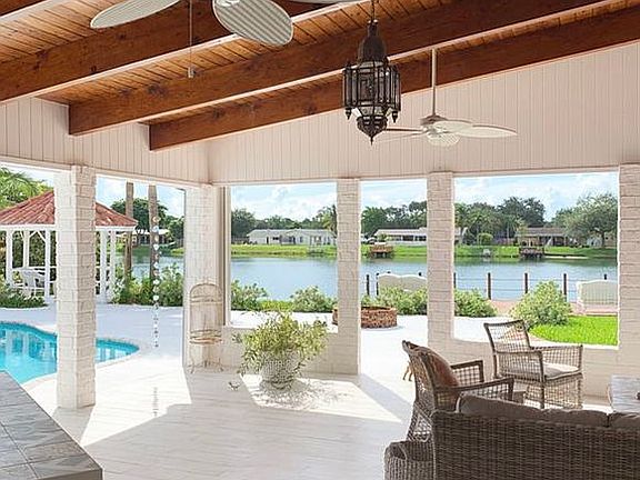 WATERFRONT!!! Mansion in a lake. Huge garden. Very bright house. Water views to pool and lake from inside. Cover patio. Great house to have a family, host parties and have fun. Playroom for kids. In laws efficiency with kitchen, Bayfront and walk in closet. Large master bedroom. Dade County Pine Beams: Italian Quartz Countertops: Oversized Deck, Dock for kayak, canoes and water toys. Impact Resistant Windows and front door: Handmade Roof Tiles; Handmade Brick Driveway; Copper Gutters; Spanish Terra-cotta Floors; Gazebo; Remodeled Glass Tile Pool; Sprinklers; Landscape Lighting; Spanish Stucco; Open Concept; Quaint and Sophisticated, new AC units.