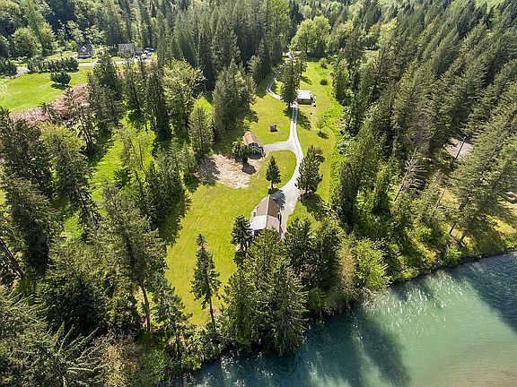 PERSONAL RIVER RETREAT, Come relax in this park like setting w/ 426' of prime riverfront, Includes 3 tax ID totaling 5.82 acres. Main home features large deck, vaulted ceilings, beautiful hard wood floors, custom wood work throughout, 3 bed 2 bth, & 180 deg view of the river. Additional home on separate tax parcel features 2 bd, 1.5 bath w/ kitchen, laundry & extra storage, perfect for MIL or guest cabin. Endless opportunities w/1000+ sqft shop, includes office, 1/2 bth & wood stove.