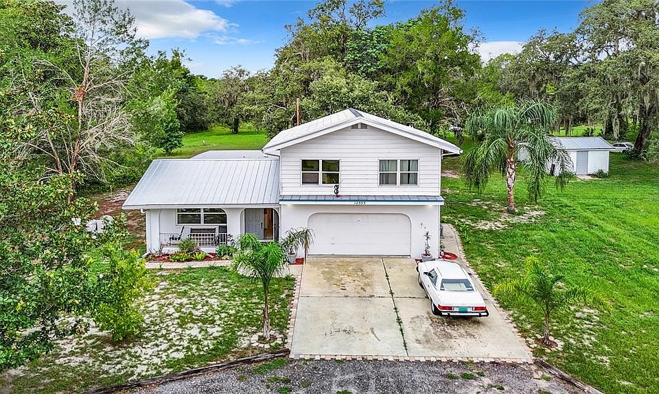 Charming Double-Story Ranch Style Home on Nearly 4 Acres. This 4/2 double-story ranch style home w/ 2 car garage offers the perfect blend of comfort and tranquility. With a new metal roof and a newer AC system, you can enjoy peace of mind and modern efficiency. Newer floors throughout the property with a fresh coat of paint. NO FLOOD ZONE. Property also features bright Florida room, a perfect spot for relaxing while overlooking the mature trees that surround the property. Plenty of space to build a pool. Outside, you'll find two spacious outbuildings that provide ample storage or could be used as workshops or hobby spaces. The property boasts great privacy, ensuring a quiet retreat from the hustle and bustle of everyday life.