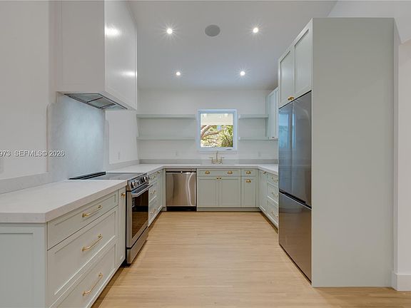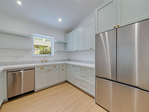 Completely gutted and remodeled home, located in the heart of Pinecrest, this inviting 4 bedroom, 2.5-bath house blends timeless charm with thoughtful updates. A combination of wood floors and coral tile adds warmth and character throughout. The spacious, light-filled living room easily accommodates both living and dining areas and flows seamlessly into a sunroom with original wooden beams and large windowed doors, creating an effortless indoor outdoor feel. The kitchen features brand new appliances, an electric stove and a dedicated breakfast area, ideal for casual dining and everyday living. The primary suite offers an en-suite bathroom, dual vanities, and a walk-in closet. Two additional bedrooms share a full bathroom, complemented by a separate powder room and an additional 4th room suitable for a home office or bedroom. Outdoor highlights include a welcoming front porch, a large circular driveway, a one-car garage, an expansive front yard anchored by a beautiful mature tree, and a spacious backyard offering flexibility for outdoor living or future enhancements. Located within the Pinecrest Elementary School boundary, moments from Gulliver, with easy access to nearby parks and walking trails.