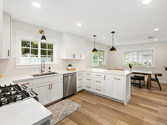 Prepare to be impressed by this 1966 charmer on Blue Sky Dr in Cardiff! The functional, single-level floor plan with 4 bedrooms and 2.5 baths provides plenty of space to live comfortably. The recent renovations to the home add modern touches to the classic charm and include quartz counters, stainless steel appliances, pendant lighting as well as updates to the bathrooms, flooring, paint, and landscaping. The standout feature of the property is the covered outdoor dining and entertaining area, which offers the perfect backdrop for family dinners and hosting friends. With a generous 10,000 square foot lot, there are green and peaceful spaces in both the front and back yards for playing, gardening, or simply relaxing. The oversized two-car garage has room for storing vehicles as well as surfboards, bikes, and more. A finished bonus room behind the garage is versatile and can be used for a number of purposes, from an office to an art studio or even a yoga/workout room. Blue Sky Dr is a highly desirable street which offers easy access to the freeway, El Camino Real, the best beaches in North County, restaurants, and of course, El Nopalito chips and salsa. You don't need to do anything but move in!