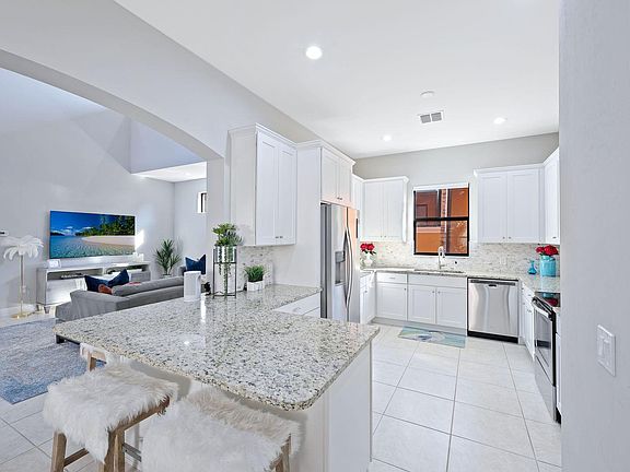 This two story single family home offers 3 bedroom plus 3 ½ bath plus private courtyard patio. Popular floor plan located in the resort-style community of Artesia located just 15 minutes from Marco Island and a mere 12 minutes to Naples' fabulous 5th Avenue and pristine white sand beaches. Downstairs offers tile throughout the living area, granite counters and stainless steel appliances in the kitchen, separate dining area, ½ bath plus private 2 car garage. Upstairs offers spacious primary bedroom with double vanities, soaking tub and walk in shower, plus 2 on-suite guest bedrooms. Artesia features resort style pool, clubhouse with theater, fitness center, clubroom, billiards, tennis, pickleball, a dog park and walking paths around the beautiful lake.
