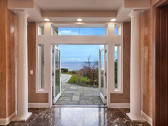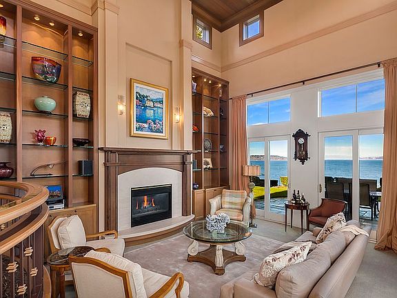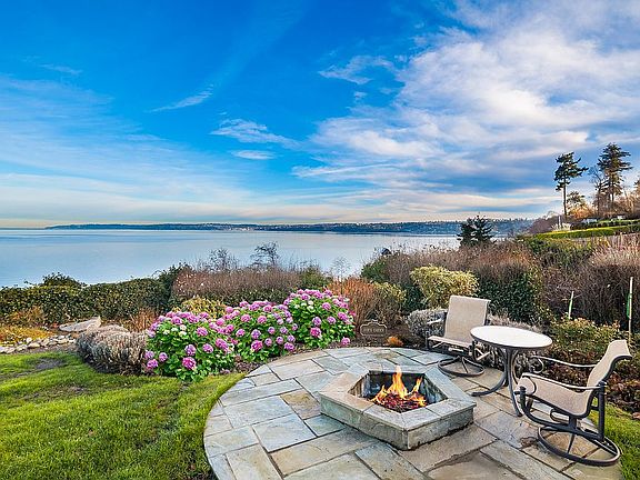 Puget Sound waterfront... legendary views; gated entry with 60' salt water beach. Starfish reaching their arms to sparkling namesakes above; Sea-paths of marine action; Riptide music ringing keys of fluorescent ivories. Facing sunsets, nature's magic spiraling window scenes. A primary home depicted as formal; additional room to play. Developed over garage: spillover sleeping room; Workout gym or study room; 1/2 bath. Path/stairs to community beach front next door. Kaleidoscope vistas.