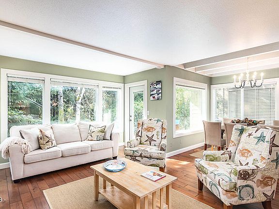 Private & secluded contemporary condo in Little Whale Cove, gated ocean front community on the Oregon Coast! Attention to detail throughout featuring engineered hardwood floors, sunny new kitchen appliances & granite counter tops & newly updated bathrooms. Living room with new gas fireplace that opens out to the garden patio, perfect for relaxing year-round. The cozy den can also be used as 3rd bedroom. Lovely master bedroom w/ office space & storage loft & brand-new deck. Lots of storage in the detached garage & landscaped garden-patio back yard! Additional improvements include a new 40 yr roof & skylights, new interior doors, and crawlspace completely encapsulated w/dehumidifier & sump pump. Comes furnished!