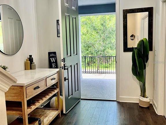 Your 2023 Maintenance Free Townhouse Dream Awaits! !Live the life you've always imagined in this immaculate, three-story 2023 townhouse, boasting over $20,000 in builder upgrades and a stunning, modern aesthetic. Enjoy your morning coffee or evening unwind on the front porch overlooking serene conservation, offering a perfect, tranquil retreat. Inside, the first floor offers incredible flexibility. A spacious area can easily serve as your home office, den, or a true fourth bedroom thanks to the full en-suite bathroom (complete with a tub). Parking is a breeze in the epoxy-floored garage, featuring overhead storage racks and plenty of extra room for your gear. You'll even find custom woodwork designs throughout the home, adding a unique, upscale touch. Ascend to the open-concept second floor with its high ceilings and perfect flow. The perfectly sized dining area is ready for family meals and entertaining friends. Unleash your inner chef in the gourmet kitchen, a true showstopper! It features a built-in oven, an EXPANSIVE pantry, sparkling granite countertops, soft-close drawers, upgraded 42-inch cabinets with crown molding, and designer fixtures and lighting. The spacious living room provides plenty of space, even room for a small desk or play area. A convenient half bath with upgraded fixtures completes this main living level. The third floor is your sanctuary. The well-sized Primary bedroom is a haven of relaxation, featuring a HUGE walk-in closet. The upgrades continue with Level 5 textured carpeting for a durable and luxurious feel, and a stunning modern accent wall that creates a true custom home look. The upgraded laundry room makes chores a breeze with additional storage cabinets and designer tile flooring. Two additional, well-appointed bedrooms with center-lit ceiling fans and a full bath (with tub) round out the top floor. For peace of mind, the home is prewired for whole-house security, including camera hookups and you'll even find custom woodwork designs throughout the home, adding a unique, upscale touch.Step outside and truly enjoy the amenities! The community pool is just 20 steps away, perfect for a quick, refreshing dip. Explore the nearby walking distance town center for dining and shopping, or hop directly onto the scenic 23-mile Cross Seminole bike trail from your doorstep! The HOA maintains the roof and exterior, giving you a low-maintenance, worry-free living experience. You're minutes from the 417 highway, local restaurants, shopping, playgrounds, parks, and more! Schedule your showing today!
