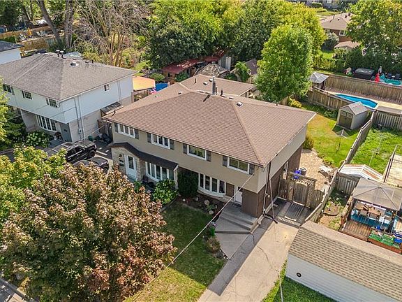 Welcome to this lovely semi-detached home, offering 1,599 square feet of total living space in one of South Burlington’s most desirable and family-friendly neighbourhoods. Perfectly situated just steps from schools, parks, community amenities, and everyday conveniences, this home is designed with comfort and practicality in mind, making it an ideal choice for new and growing families alike. From the moment you arrive, the charm is evident with a long driveway, perennial gardens, and an aggregate walkway that lead you to the welcoming front entrance. Inside, the main level boasts an open and functional layout, ideal for family living and entertaining. A spacious living room filled with natural light through a large bay window flows seamlessly into the eat-in kitchen and dining area. With ample cabinetry and direct access to the rear yard, the kitchen is the heart of the home and a wonderful space for gathering. Upstairs, the primary bedroom is a bright and comfortable retreat with hardwood flooring. The upgraded 4-piece bathroom offers a modern tile shower, while three additional well-sized bedrooms provide plenty of space for children, guests, or a home office. The lower level adds even more value with a spacious rec room, adaptable for a playroom, media space, or fitness area. There’s room for everyone to spread out and enjoy. Outside, the fully fenced backyard is a private oasis for family enjoyment. An interlock stone patio sets the stage for barbecues and summer evenings, while ample green space provides room for kids or pets to play. A shed offers practical storage, and garden beds allow you to add your own touch. Blending charm, function, and convenience, this home presents an exceptional opportunity for families looking to plant roots in Burlington, in a neighbourhood where community, comfort, and everyday ease come together seamlessly.