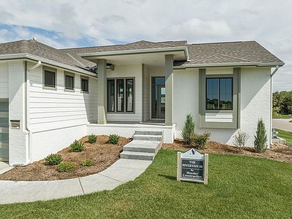 Absolutely spectacular new design by Moeder Construction with over 1500 square feet on the main floor. Presenting the Riverton III design! When you arrive you will love the exterior elevation with hip roof, gorgeous colors, stone, wood accents, windows in the garage doors, unique windows at the large porch and black windows. The design is a split bedroom plan with a large master suite offering double vanities, tile shower, walk in closet that connects to the laundry room. The living room bestows large windows, gorgeous beams and an electric fireplace. In the kitchen you will find tons of cabinets, coffee bar, walk-in pantry, custom bench with cubbies and custom range hood. Relax on the large raised concrete patio! The community gives fabulous amenities such as a clubhouse, swimming pool, pickle ball court, fitness center and dog park! Some information is estimated and cannot be guaranteed. Options and pricing are subject to change without notice. There will be a mailbox fee charged at closing.