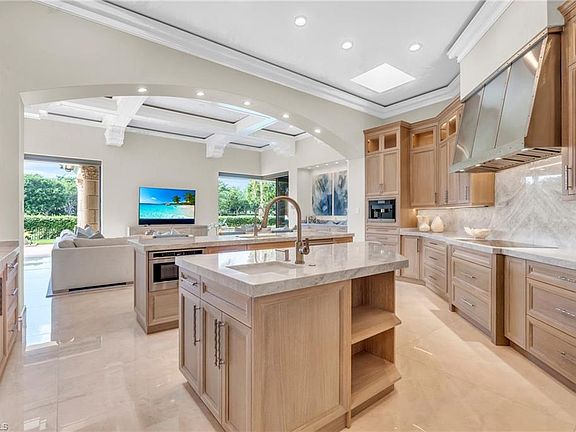 Welcome to your dream home in The Estates of Bay Colony, Naples' most exclusive enclave. This luxurious residence spans over 6,900 square feet and is meticulously designed for both elegance and comfort. Step inside to discover a brand-new custom kitchen by Zuma Design, crafted with a sophisticated white oak finish and equipped with high-end features: all-drawer lower cabinets, multifunctional organizer drawers, heavy-duty appliance lifts, and internal and under-cabinet LED lighting. Culinary enthusiasts will appreciate the top-of-the-line appliances, including a Thermador induction cooktop, a 48" Thermador refrigerator and freezer, and dual Cove dishwashers. The home offers five en-suite bedrooms, an executive office, a wine cellar, a 3-car garage, and an additional golf cart garage. The grand foyer impresses with soaring ceilings, leading into expansive living areas that are ideal for both relaxation and entertainment. The lavish master suite includes a serene sitting area, a spa-inspired bathroom, and spacious walk-in closets. A first-floor guest suite boasts a large en-suite bathroom, outdoor patio access, and a private wet bar. The three additional guest bedrooms, each with an en-suite bathroom, provide the ultimate in privacy and comfort. Outdoors, the luxurious lifestyle continues with a stunning pool, spa, fountain, and an alfresco kitchen fitted with Kalamazoo appliances, including a grill, pizza oven, beverage drawers, ice-maker, and a Green Egg BBQ grill. As a resident of Bay Colony, you’ll enjoy membership privileges at the Bay Colony Beach Club, situated on two miles of pristine beach. The Beach Club offers an exceptional dining experience, from casual to fine dining, along with outdoor amenities like a private beach, swimming pool, Sunset Terrace, and Chickee Bar. The Tennis Club, with six courts and a fully equipped Pro Shop, adds to the array of premium amenities. Experience the opulence and sophistication of this extraordinary estate in The Estates of Bay Colony, where world-class service and luxurious living await. Make this prestigious residence yours today!