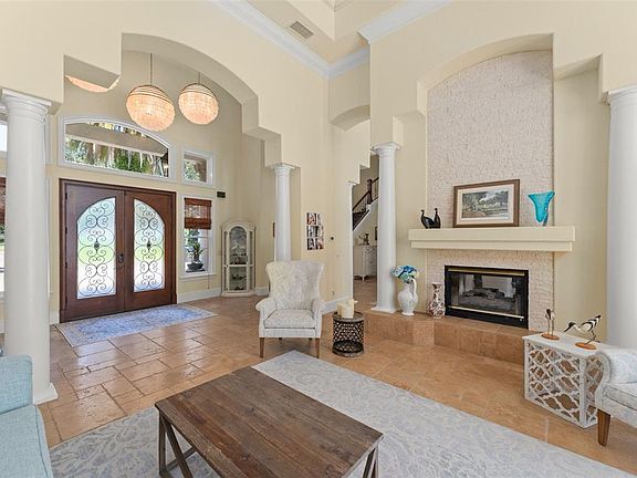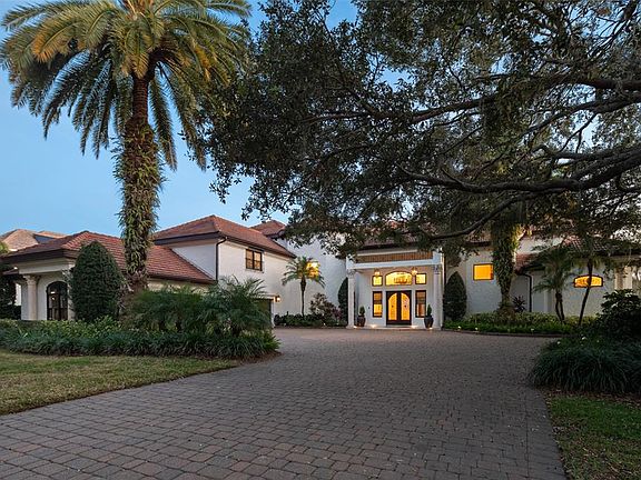 Offering a prime lakefront location along the shores of Lake Butler in the esteemed gated community of Chaine du Lac, this distinguished estate features timeless architecture paired with transitional interiors and gorgeous views to showcase Windermere lakefront living at its finest. The estate has been elevated with significant recent improvements, including a brand-new roof, an all-new primary suite, a fully updated outdoor kitchen, and a $100,000 designer lighting package by Lightstyle of Orlando, all adding to the home’s sophistication and functionality. Designed for effortless entertaining, the elegant living and dining rooms are highlighted by soaring ceilings and a dramatic double-sided fireplace, while the spacious family room and breakfast nook seamlessly connect to the kitchen and open to serene water views. The all-new primary suite has been fully reimagined with a new spa-like bathroom featuring elevated modern appointments including beautiful vanities, an oversized walk-in shower and a freestanding tub - elegantly accented by the home's new lighting package. The primary suite also features a gas fireplace and a private den, offering a quiet escape for a home office or study. A thoughtfully designed guest suite with its own sauna is also located on the main level, ensuring privacy and comfort for visitors. Upstairs, a media room and three ensuite bedrooms provide space and privacy, while a secondary staircase leads to a versatile game room with a full bar, half bath, and private balcony. A flexible cabana space presents options for a sixth bedroom, gym, or additional living area. The outdoors are equally captivating, with spacious sundeck surrounding a sparkling pool with fire pits. Additional highlights include the newly updated summer kitchen, a grand pergola featuring a loveseat swing and fireplace, a immaculate sand beachfront, and a double-slip boat dock. An expansive four-car garage, multiple energy-efficient air-conditioning systems, and a full-home generator complete the property. From golden sunsets to every carefully curated detail, the residence is framed by sweeping lakefront vistas and an ambiance of refined living.