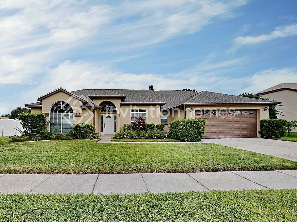 Home Features and Amenities: Air Conditioning, Breakfast Nook, Fenced Yard, Garage, Granite Countertops, Long Lease Terms, Luxury Vinyl Plank, Open Floorplan, Patio, Pet Friendly, Primary Bedroom on Main, Recessed Lighting, Single Story House, Smart Home, Stainless Steel Appliances, Tile, Walk in Closet, W/D Hookups, and professionally managed by Invitation Homes.