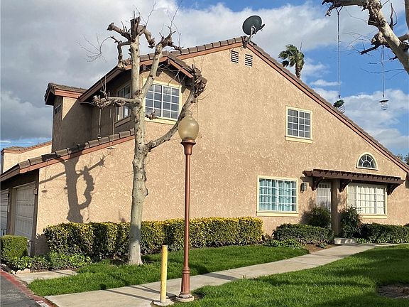 Welcome to a lovely end unit townhome in a sought after gated community of Arbor Pines. This home features three bedrooms and three full bathrooms. The main level includes a spacious living area with vaulted ceiling, one bedroom and one bathroom, a dining area with sliding glass door to access your private back yard and a bright kitchen equipped with stainless steel appliances and ample pantry space and storage. Primary suite on the second level and the third bedroom and bathroom. Laminate wood like flooring in living and dining areas, floor tiles in the kitchen and all bathrooms, new berber carpeting along the stairs, hallways and all bedrooms. Direct access to an attached two car garage with roll up doors. This property is conveniently located near major freeways, shops and restaurants. Great starter home! Come and see! Don't let this opportunity pass you by!