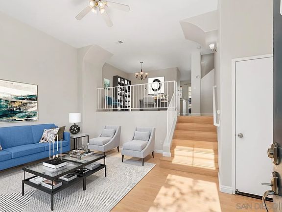 Highly desirable and centrally located in the heart of 92130, one of the most prized zip codes in San Diego with enviable top-rated schools! This bright and airy south-facing Crest at Del Mar home has vaulted ceiling in the living room, two master bedrooms with ensuite bathrooms; a half bath on the lower level; a charming balcony off the breakfast nook; and an open-concept room that combines dining and hybrid workspace. The 2-car attached garage has an oversized extra storage space. New water heater, wall oven and microwave oven with ducted exhaust were just installed last year. Enjoy the resort-like amenities with swimming pool, spa and gym. LOW HOA fee covers water. Close to wonderful dining, shopping and entertainment at Del Mar Highlands Towne Centre, One-Paseo, and famous beaches. Ideal for 1031 Exchange or deferred owner occupancy.