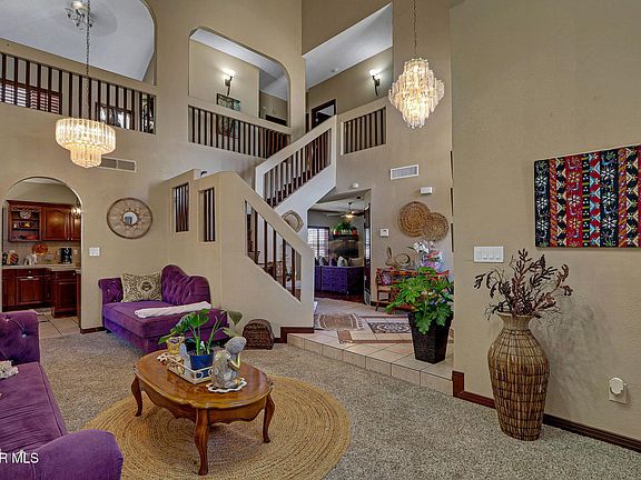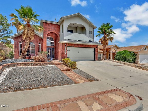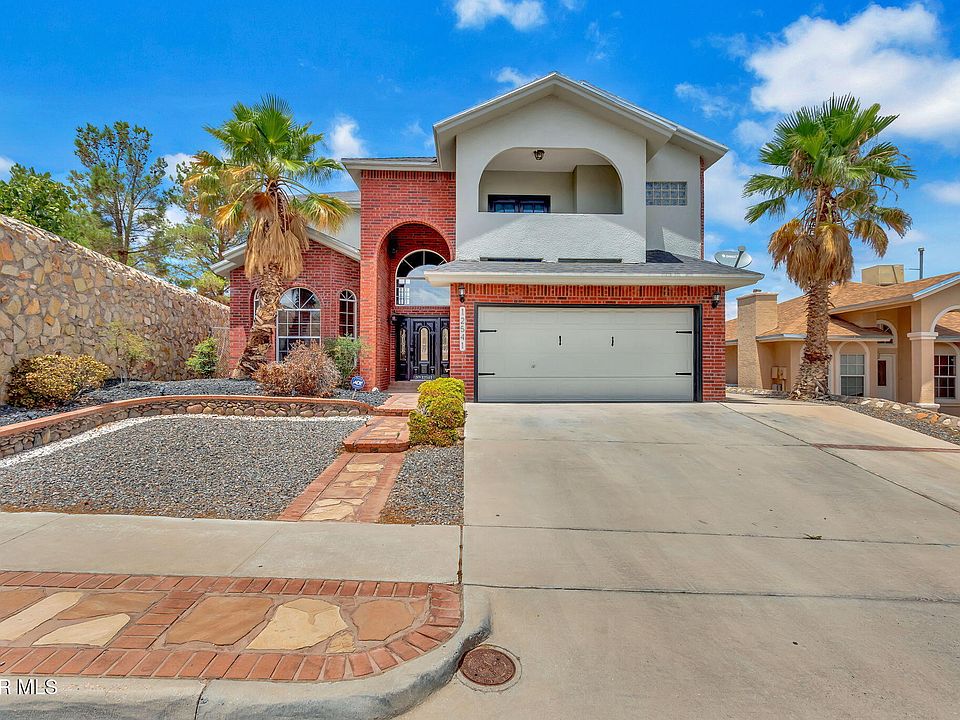 Investment Opportunity in Sun Ridge Estates! This beautiful brick home offers over 2,400 sq ft of living space with charming architectural features, including vaulted ceilings upon entry. Enjoy a formal living and dining room, a cozy family room with a gas fireplace, and a breakfast nook that overlooks the expansive backyard. The spacious kitchen features an island and ample cabinetry. Upstairs, you'll find three generously sized bedrooms and a versatile loft with access to a balcony—perfect for relaxing mornings. The primary suite includes vaulted ceilings, dual sinks, a garden tub, separate shower, and private balcony access. Secondary bedrooms are spacious and share a hallway bath with dual sinks. Additional highlights include refrigerated air, shutters throughout, a large laundry room, and a 2-car garage. The oversized backyard offers endless potential—add a pool, jungle gym, or design your dream outdoor retreat. A true gem!