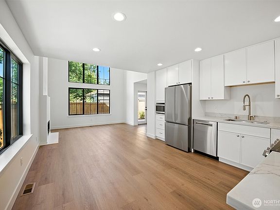 Last Home Left! The Sterling is part of the all-new Broadview Bungalows. Cartwright Built’s newest pocket community presents three new residences in the Broadview neighborhood of NW Seattle. 4-Star Built Green certification, this detached two-story bungalow brings efficiency & simplicity all rolled into one. Modern Tudor inspired, this home delivers a unique custom DADU floor plan w/ an incredible 21 foot double volume living room ceiling complete with 2-story windows & cozy fireplace! Enjoy two bedrooms w/ensuite baths, garage parking w/ready EV attached charger, enclosed private patio/yard space & peekaboo water views. Thoughtful, simple touches throughout including custom closet organizers, soft close cabinets & tons of natural light.