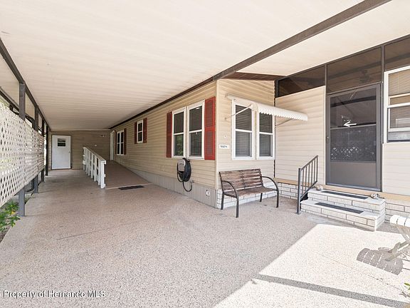 Step into comfort and convenience with this spacious 3-bedroom, 2-bath double-wide manufactured home offering over 1,700 sq. ft. of living space. Major updates include a new roof (2020), brand new AC installed August 2025, and window/door replacements (2017), giving peace of mind for years to come. Inside, you'll find an inviting open floor plan with a bright living room featuring a cozy fireplace, a formal dining area, and a well-equipped kitchen with ample cabinetry, stainless steel appliances, and generous counter space. The split-bedroom design ensures privacy, with a large primary suite offering dual closets and an ensuite bathroom with a walk-in shower and vanity. Additional highlights include indoor laundry hookups, a flex Florida room with a hot tub (included, sold as-is, not used in recent years), and a workshop/storage area for hobbies or tools. Enjoy outdoor living with a private deck and yard shaded by mature trees, perfect for relaxing or entertaining. This home is nestled in a vibrant 55+ golf community with amenities that go far beyond the fairways. Residents enjoy pickleball, shuffleboard, bocce ball, cornhole, horseshoes, basketball, table games, puzzles, library, entertainment events, a community pool, Veterans Memorial, dog park, and even a storage yard for vehicles and trailers (check HOA for details). Conveniently located near shopping, dining, and major roadways, this home blends comfort, lifestyle, and community in one great package.