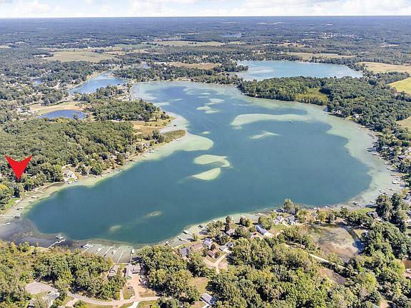 DISCOVER LAKESIDE LUXURY AT FARWELL LAKE! Tucked away at the end of a tranquil cul-de-sac, this exceptional property offers unrivaled privacy and a coveted ''Up North'' setting. This completely updated, modern 3 bedroom, 3 full bath home offers over 2,400 square feet of thoughtfully designed finished living space with 100 feet of private lake frontage & steel seawall. From the moment you step inside, you'll be captivated by soaring vaulted ceilings and an expansive wall of windows framing breathtaking lake views. Cozy up to the natural wood burning fireplace this Fall & Winter season. The open concept main level flows seamlessly into a completely updated kitchen featuring new quartz countertops & appliances with stylish finishes. Main floor living adds convenience and comfort, while the wraparound deck invites you to relax and soak in the scenery. Each of the bedrooms offer lakeside views with private sliding door walkouts & the two bedrooms upstairs share a balcony. The finished walkout lower level features heated floors, a new wet bar & carpet, full bathroom & sprawling additional living room. Enjoy entertaining outdoors with multiple spaces-from the exposed aggregate concrete patio, to the wraparound deck with sunken hot tub and the terraced lakeside deck leading to the cascading steps to the waters edge. The lush 0.65 acre setting includes irrigation systems with multiple zones to covers the entire yard. All new landscaping & a evergreen border of pine trees ensures your privacy remains all year long. Updates include main floor bathroom with tile walk-in shower & glass enclosure, brand new second floor bathroom, all interior doors, sliding glass doors, flooring, paint, fixtures, kitchen, irrigation pump & more. Natural gas whole house auto generator. 2 Car detached garage & concrete drive. Freshly paved roads & Xfinity high speed cable is available at the street. Don't miss your chance to own a piece of Southern Michigan's most desired chain of crystal-clear-Caribbean-blue lakes exploring through Rainbow, Farwell, Pinehill & Fox lakes!