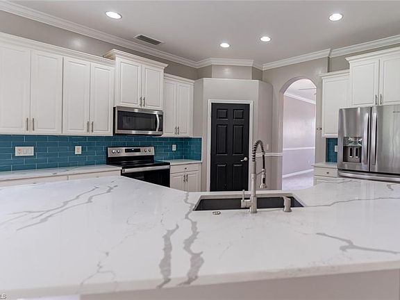 5 bedroom 3 bathroom stunner in Fort Myers! This beautiful kitchen includes stainless steel appliances, granite countertops, stylish tile backsplash, and spacious cabinets, helping you cook the perfect meal every time. Step inside this beautiful interior with tile floors, plenty of natural light, and neutral palette. Primary bathroom features a separate tub and shower and dual sinks. Relax with your favorite drink in the screened-in patio. This home is definitely a must see! Photos have been virtually staged.