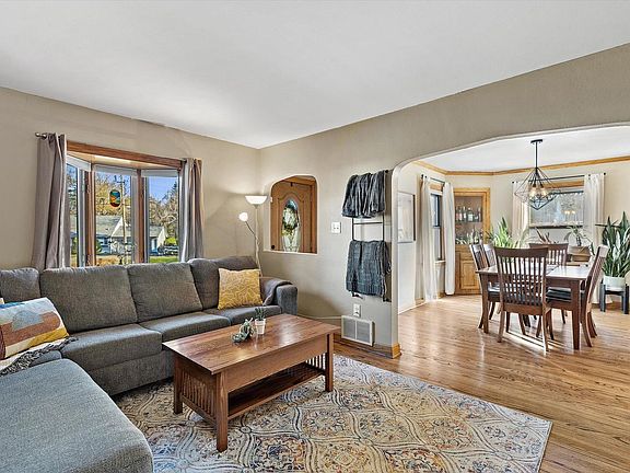 This ranch style home shines with its easy-care exterior and bright, welcoming interior. The eat-in kitchen is the heart of the home, offering a generous island and plenty of counter space. Great layout featuring a formal dining room with built-ins, a spacious living room, and even a cozy office nook. Enjoy dual access to the deck overlooking a deep, private lot with lush green lawn, garden beds, and a fire pit. The third bedroom with patio doors doubles perfectly as a den or office. A RARE find -- a second 3-car garage with heat and electrical, ideal for hobbyists or extra workspace. Bonus walk-up attic provides additional storage. The lower level includes a finished rec room, a full bath with walk-in shower, and potential for further expansion. This one checks all the boxes!