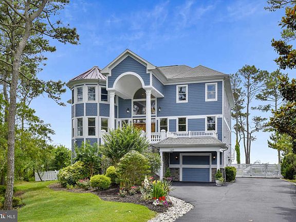 This luxury coastal oasis is 7,500+ sq. ft. with mesmerizing, panoramic views of the Sinepuxtent Bay, Assateague National Park and more! Residing within one of the area~s most prestigious neighborhoods, Ocean Reef, which is just a short drive from downtown Ocean City, this luxurious waterfront estate offers everything you could ever want in beach living with easy access to the Atlantic Ocean. Its close proximity to the Town of Berlin, which was named the Coolest Small Town in America, Assateague National and State Park and West Ocean City makes it a ~best of both worlds~ location near some of the area~s top-rated bars/restaurants, outlets, coffee houses, grocery and specialty stores, family fun and more. The exquisitely custom-designed floor plan includes three soaring levels with 6 bedrooms, (5 ensuite), as well as massive indoor and outdoor living spaces ideal for entertaining! Enter this magnificent home through the stately and colossal wood doors to the foyer and see regal columns and archways atop gorgeous rich Brazilian cherry wood floors! Follow the columns to the spacious great room and witness the exquisite craftsmanship of the circular wall of windows overlooking the bay, cathedral ceiling, built-ins and the striking floor-to-ceiling stone fireplace! Walk directly outside and enjoy the elegance and peacefulness of the large wrap-around deck. The massive, airy kitchen includes a jumbo center island with room to entertain a large group of guests, as well as several additional luxurious features: Jenn Air cook top with grill, double built-in convection ovens, Sub Zero large refrigerator, wine cooler, two trash compactors and two dishwashers and a walk-in butler~s pantry! Plus, there are 180 degrees of large windows to soak in those captivating coastal views! The first ensuite bedroom with an entrance to the deck is on the main floor. The formal dining room and theatre room lay adjacent to the foyer. On the 2nd level resides the master suite where the awe-inspiring views are even more enthralling - and yes, that is possible! The master includes a large balcony and 2 massive walk-in closets with built-ins and a full office space. The luxurious bathroom has an enormous shower and a jetted tub with sizable windows to peacefully gaze outside! There are 2 bedrooms, a front and back that have ensuite ~ baths and share a shower. The rear bedroom has a private balcony and a walk-in. The 4th bedroom on level 2 is ensuite and has its own atrium wall of windows! The ground level mudroom provides second entry point from both the 1 car and 2 car garages, as well as a side door. This level also houses an over-sized game room with wet bar and access to outside, a living room, additional bedroom, full bath, 2nd kitchen with 2nd W/D and gym. Exit to the backyard to find a stone, partially covered patio, hot tub and heated in-ground pool. There are 2 gas hook-ups for grills or firepit, an outdoor shower and a white picket fence. Go through the gate to take a long, tranquil walk on the pier to your 2 boat slips with 2 -10,000 lb. boat lifts and 1 waverunner lift! BONUSES include: an Elevator, Plenty of Storage with hall closets, walk-ins, custom built-ins, cabinets and shelves. UPGRADES Galore: water views from most rooms, granite, Brazilian cherry on two levels, luxury vinyl on lower level, central vac, intercom system, surround sound, heated floors in bathrooms, electric shades in master & great room, in-ground sprinkler system, outdoor cameras & motion lights, security system, 2 staircases to access the 2nd level, 4 geo-thermal heatpumps (3 installed in 2018). SEE virtual tour for interactive floor plans, drone & 3D video. Schedule a time soon to come and see this exquisite dwelling in person! Life is Not a Dress Rehearsal - Own at The Beach!
