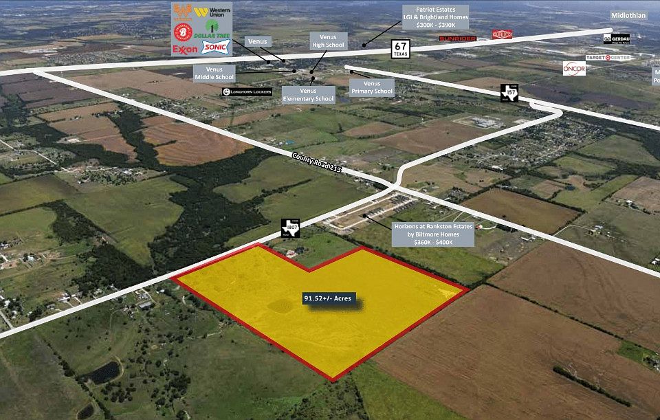 Venus is a rapidly growing city in Johnson County, with a strong median household income of $97,039, and has experienced an estimated population growth of 72.6% from 2020-2023. The city of Venus is conveniently located approximately 30 miles south of both the Dallas and Fort Worth CBD’s. The Site is strategically located near several single-family developments, including Biltmore Homes’ Horizons at Bankston Estates.
