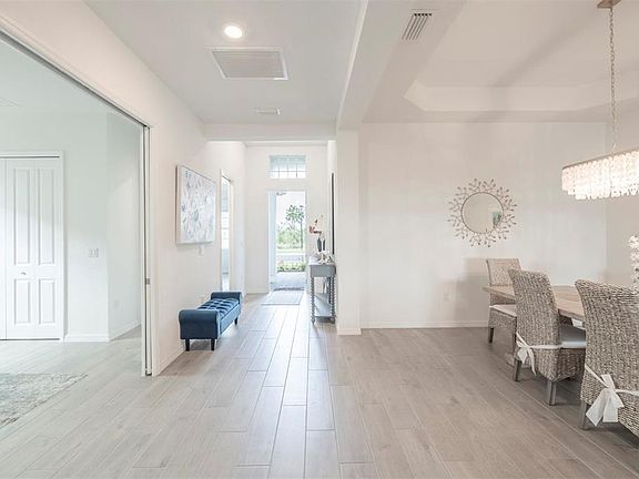 ***INCLUDES TWO DEEDED GOLF MEMBERSHIPS*** Welcome to Wellen Park Golf and Country Club — Wellen Park’s only golf neighborhood, where you’ll find this beautifully appointed Angelina model home. This spacious 3-bedroom, 2-bathroom pool home is located just a short walk or golf cart ride to the plentiful amenities, including a thoughtfully designed 18-hole golf course, where you can take advantage of TWO deeded GOLF MEMBERSHIPS. Inside, you’ll find full IMPACT WINDOWS and doors for ultimate peace of mind. The home features an open floor plan that seamlessly connects the living room, dining space, and kitchen, creating a perfect flow for entertaining and daily living. The kitchen is complete with an electric stove, large counter space, plenty of upper and lower cabinets for extra storage, a pantry and coffee nook. Three sliding glass doors bathe the space in natural light and open directly onto the expansive outdoor deck — perfect for al fresco dining, lounging in the sun, or relaxing by the large pool and luxurious spa. Turn on some music, grab your cocktail through the service window and enjoy the tropical scenery from inside the pool. Absolute Florida PERFECTION! The right wing of the home holds all three bedrooms. The luxurious primary suite includes an ensuite bathroom with both a shower and tub, his-and-her closets, and a private exit to the pool deck. The second bedroom is generously sized and well-lit with three long windows. It shares a bathroom with the third bedroom room (currently staged as a den) which easily fits a desk or home office setup alongside a Murphy bed or pullout couch, but can also be fully converted into a traditional bedroom, thanks to its closet. Residents enjoy access to world-class amenities: a resort-style pool, a tiki bar style restaurant, a state-of-the-art fitness center with classes, day spa, bocce ball, pickleball, tennis courts, dog park, playground, event lawn, golf pro shop, tennis shop, and an 18-hole championship golf course designed by Gordon Lewis. This is a golf cart-friendly community where you can explore with ease. The location is unbeatable — just minutes from the Atlanta Braves’ spring training camp, the vibrant new Downtown Wellen Park with its lakeside restaurants, events, shopping, and water activities, and close to three beautiful Gulf Coast beaches. This is more than a home — it’s a lifestyle. Don’t miss your chance to own one of the most in-demand golf properties in the region!