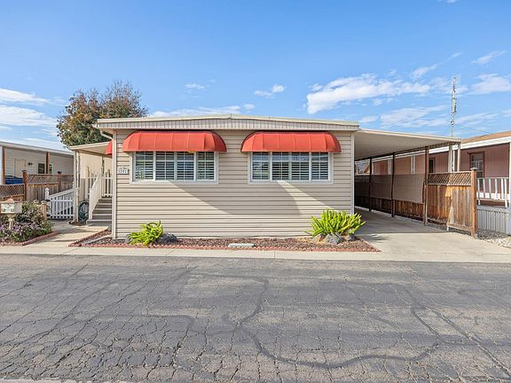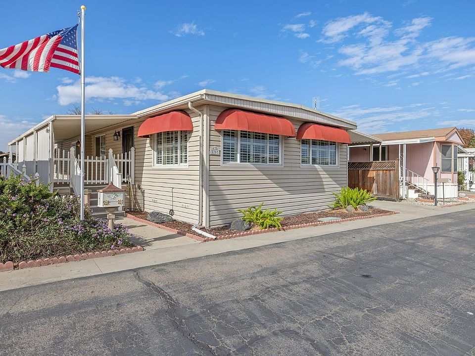 Wonderful 2-bedroom, 2-bath double-wide home in the desirable 55+ Tara Estates community. Offering 1,440 sq ft of comfortable living, this home features dual-pane windows, plantation shutters, updated electrical, a formal living and dining room, family room, and indoor laundry. The spacious primary suite includes an updated bath, while the covered patio and carport provide convenience and outdoor enjoyment. ADA ramp accessibility, three storage units, and covered parking add extra value. Residents enjoy a clubhouse, pool, spa, and a scenic pond with grassy BBQ area. RV parking/storage is also available in the park. Ideally located near dining, shopping, and easy freeway access a perfect blend of comfort and community living!