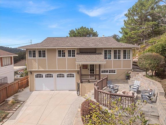 Welcome to this exquisite home nestled at the end of a tranquil cul de sac in the desirable Sun Valley Area of Pacifica. Enjoy breathtaking mountain and valley views from both the front and back of the home. Seamless access from open concept living area to stone patio in front as well as to dual decks in back allow you to immerse yourself in the serene surroundings.