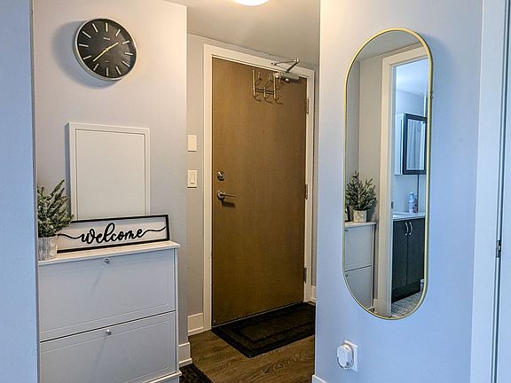 Clear unobstructed north-facing viewPrivate balconyOpen-concept layoutLaminate flooringStylish kitchenQuartz countertopsStainless steel appliances