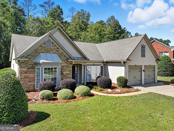 Discover the ease of main-level living in this beautifully maintained stepless ranch home, ideally situated in the sought-after Commons section of Longlake in south Forsyth county.This move-in ready residence offers the perfect blend of comfort and convenience. It features three bedrooms, 2.5 baths, a formal dining room, and a versatile flex room perfect for a study, office, or sitting room. The open-concept layout, with rich hardwood floors and abundant natural light, is designed for comfortable everyday life and easy entertaining. An oversized great room is complete with wall of windows and fireplace flanked with bookcase and niche for tv is perfectly positioned near the large kitchen. Off the main living area, the cozy screened porch overlooks the private, wooded backyard, making it the ideal spot for your morning coffee or an evening read. Best of all, enjoy low-maintenance living! Mandatory, year-round lawn care is included for just $75 a month. Residents can also enjoy the vibrant, active lifestyle Longlake provides, including a clubhouse, swim/tennis, and popular pickleball courts. Located off Peachtree Parkway and just minutes from GA 400, this gem offers the perfect blend of easy access and upscale living. This is your opportunity to secure a desirable, low-maintenance home in a fantastic, established neighborhood.