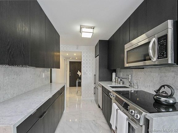 Meticulously & Fully Renovated 1-BR Condo. Turnkey Unit Comes Fully Furnished. No Expense Spared. Upgrades Include Carrara Marble Floors Throughout & Floor To Ceiling In Bath, Quartz Countertops & Backsplash, Solid Wood Custom Cabinets, SS Appliances, Large Walk-in California Closet & More! Amenities Include Rooftop Pool, New Gym, New High Capacity Generator, Remodeled Lobby, 1 Assigned Gated Parking Space (#55). All This 1 Block From Ocean. Easy to show. This will not last.