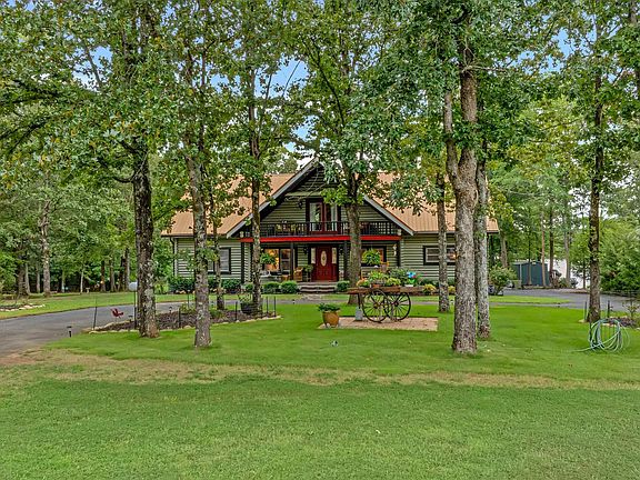 Offered below appraised value! Charming log cabin on the lake! Home offers 3 bed, 3.5 bath retreat sits on 1.06 acres and offers peaceful waterfront living w/ a covered dock, 2 boat lifts, boat ramp, a concrete seawall. Inside, enjoy warm wood finishes, vaulted ceilings, and an open living space with a cozy stone fireplace. The kitchen offers modern appliances and gorgeous new granite countertops. Each bedroom has privacy with its own bath. Perfect for a vacation home or year-round living. This property blends rustic charm meets lake living. Large, beautiful deck overlooking the lake with gazebo & hot tub perfect for entertaining. Workshop w/50amp breaker, irrigation system, new generator.