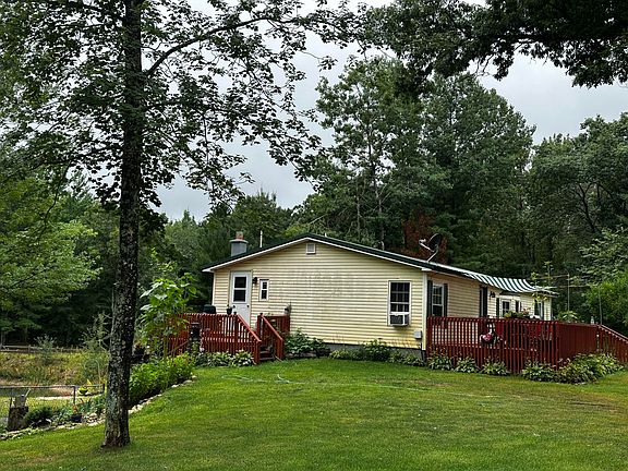 Escape to your personal wooded paradise! This fully remodeled 1990 manufactured home, set on 4 private acres, offers the ultimate retreat with exclusive access to the Little Manistee River—a renowned 'blue ribbon' brown trout river. Enjoy a beautifully landscaped pond with a sandy beach and a central fountain, perfect for swimming and fishing. The expansive deck is an entertainer's dream, while the two large, detached garages provide abundant space for all your recreational gear.Inside, the spacious living room features a cozy fireplace, and the newer, well-appointed kitchen is ready for your culinary adventures. The main-floor primary suite offers a private on-suite bathroom and a walk-in closet for your convenience. The finished walkout basement serves as a fantastic guest suite or mother-in-law apartment, with a full kitchen, living room, and a bedroom and bathroom that are all handicap accessible. With year-round gardening in the gorgeous greenhouse and doggy doors for your furry friends into the fully fenced back yard, every detail has been considered for a comfortable, outdoor-centric lifestyle. This is more than a home; it's an adventure waiting to happen, just minutes from M37 and extensive ORV and snowmobile trails.