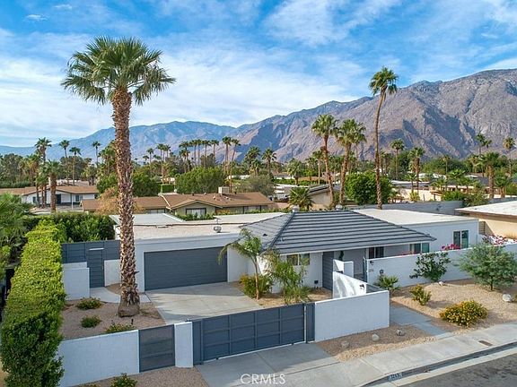 Land owned! This is not leased land like some homes nearby. Location, Location, Location! A short walk or bike ride to downtown Palm Springs and local amenities making this home perfect for easy access, While still staying the peaceful suburbs. The home has been fully remodeled to be a mid-century modern pool home. Light and bright open-floor plan with updated floors, a chef kitchen boasting quartz counter tops and stainless-steel appliances. Additional features offer updated fixtures and designer touches throughout making this home, turnkey and ready to move in. Upon walking in the front door you will be looking through the rear sliding glass doors overlooking the swimming pool and oversize backyard. Covered outdoor patio area is perfect for entertaining and steps to lounging outside in the pool on those warm desert days. This home has 3 bedrooms with a 4th room that could be converted to a 4th bedroom very easily or an office. Gated driveway leads to oversized 2 car garage and providing additional parking in the driveway. This property is secure and provides multiple security doors perfect for second home. Located on a single loaded street set back from the main road a is supplied with a private road leading to the driveway. This home has been a successful short term rental and is it popular home because of the area and proximity to downtown Palm Springs.